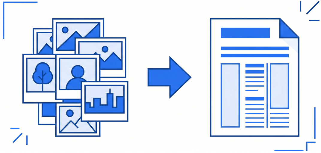 写真や画像ファイルをPDFに変換するツールです。変換処理はすべてお使いのブラウザ内で行われるため、画像がどこかのサーバーに送られることはありません。